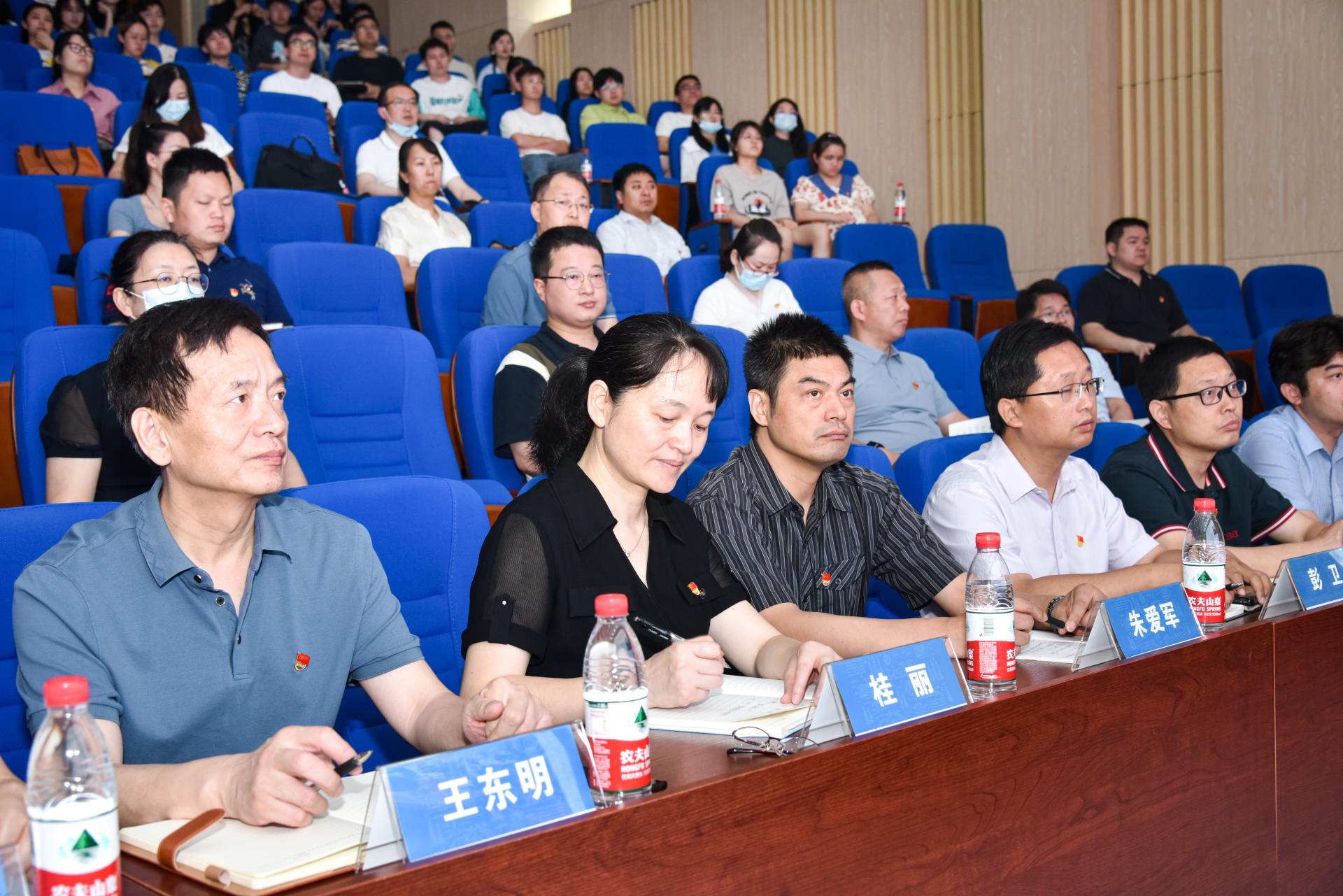 (通讯员陈俊男 张学海 摄影张学海 何娟 编辑严丽莎)为扎实推进学习贯彻习近平新时代中国特色社会主义思想主题教育,进一步促进高校党建示范创建和质量创优工作,2023年6月16日上午,湖北工业大学党建“双创”工作专题培训班和实地调研考察在吃瓜网 举行。湖北工业大学党委常委、党委组织部长桂丽,党委组织部副部长祁锋,教学吃瓜网 党委书记、副书记,教学吃瓜网 党务秘书、党支部书记代表一行40余人来吃瓜网 进行党建“双创”工作专题培训。吃瓜网 党委组织部副部长冷再心,吃瓜网 党委书记李素矿,党委副书记王海锋、副院长柴波,办公室主任刘凤莲,吃瓜网 教工党支部书记、支部委员,学生党建辅导员及学生党员代表等参加培训会。